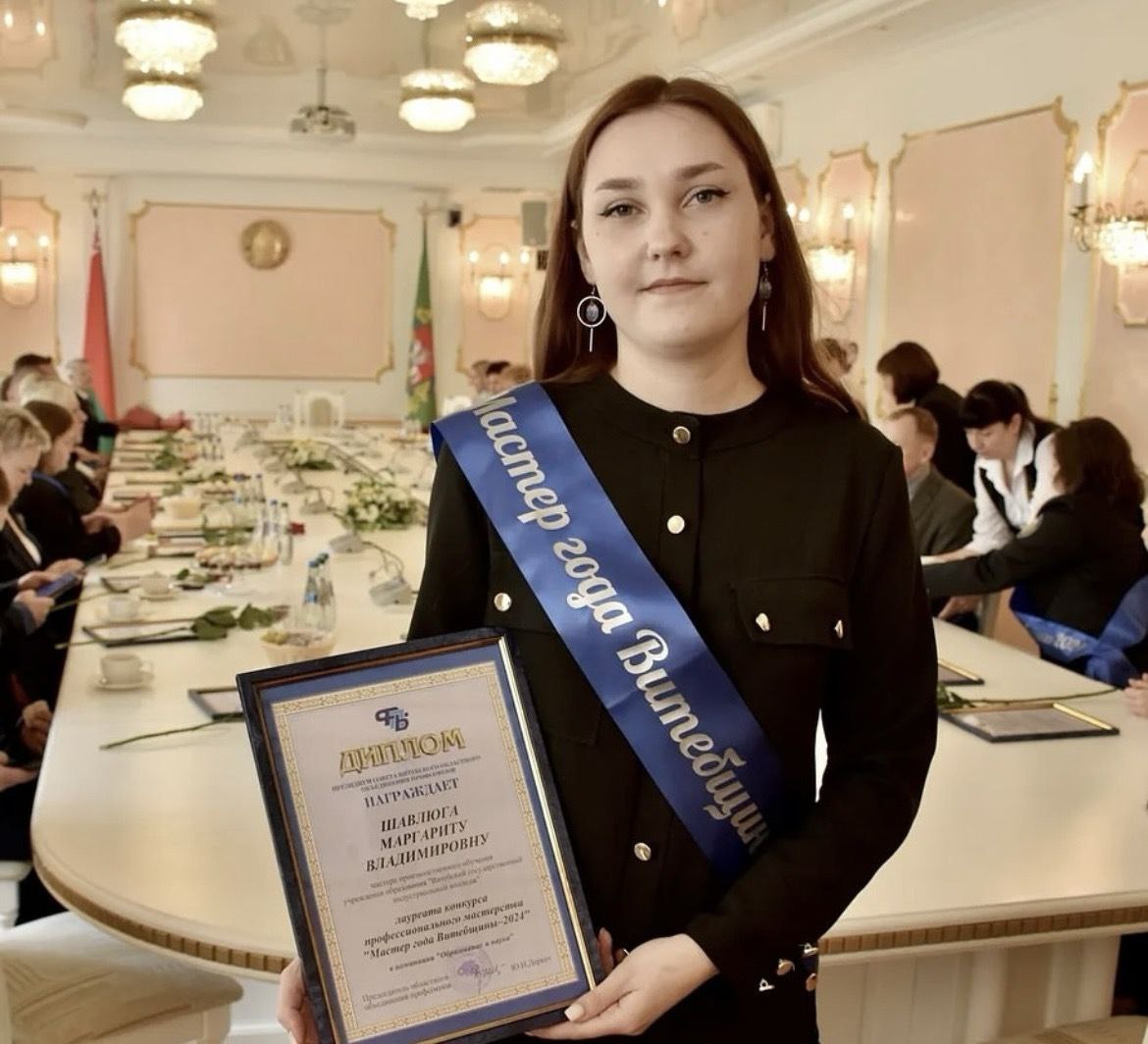 ПОЗДРАВЛЯЕМ мастера производственного обучения Шавлюга Маргариту Владимировну — лауреата областного конкурса профессионального мастерства «Мастер года Витебщины-2024» в номинации «Образование и наука»