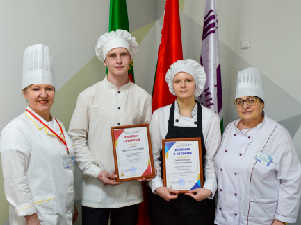 — Мастер производственного обучения Окунев Егор удостоен звания «Шеф повар-2022» и обладатель бриллиантового колпака. — Мастер производственного обучения Алёна Полесова обладателям 3 золотых медалей в номинациях: “АРТ-класс. Закуски”; “Основное блюдо из рыбы”; “Ресторанный десерт”. Команда кулинаров получила Гран-при Международного кулинарного кубка-2022.