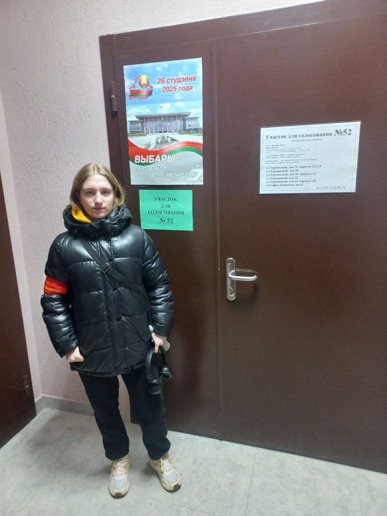 С 21 по 26 января 2025 года члены добровольной дружины колледжа приняли активное участие в досрочном голосовании на выборах Президента Республики Беларусь, а также оказали содействие сотрудникам ОВД в обеспечении охраны правопорядка на избирательном участке.
